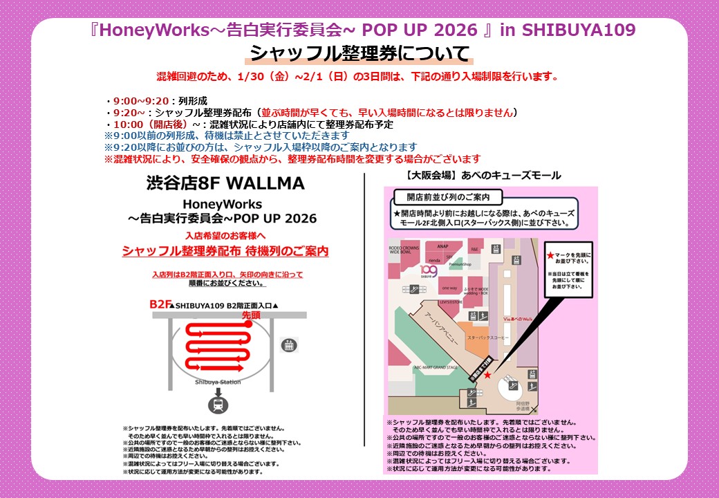 POP UPに関する最新情報はHoneyWorks POP UP公式アカウントをご確認ください。